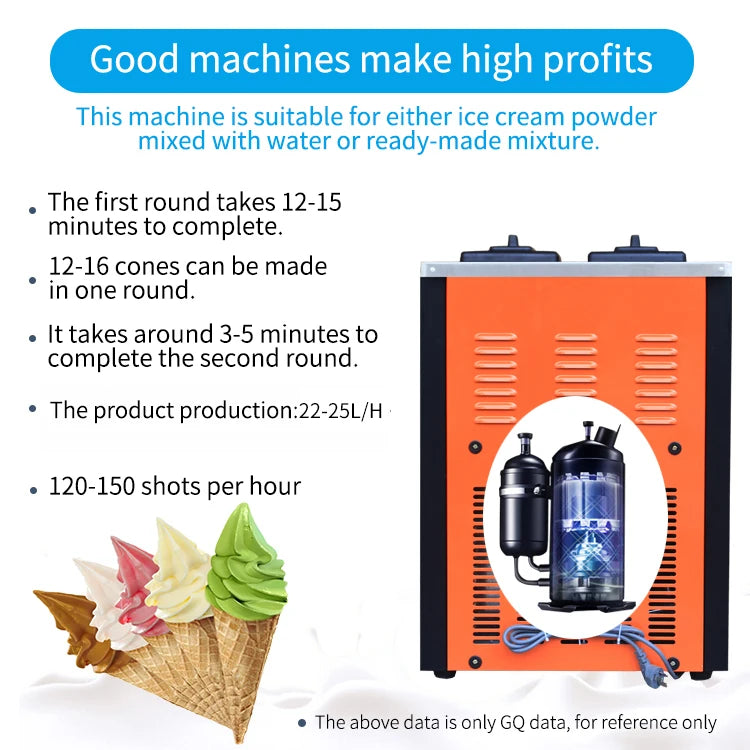 INTELLIGENT CONTROL-Convenient to Operate with LCD DisplayThe production is simple, practical and inexpensive. You can freely modulate according to different tastes. With LCD display design, you can control the quantity, hardness and temperature at any time. There is no refrigeration function in the tank, so please take out the ice cream mixture in time when not in use.