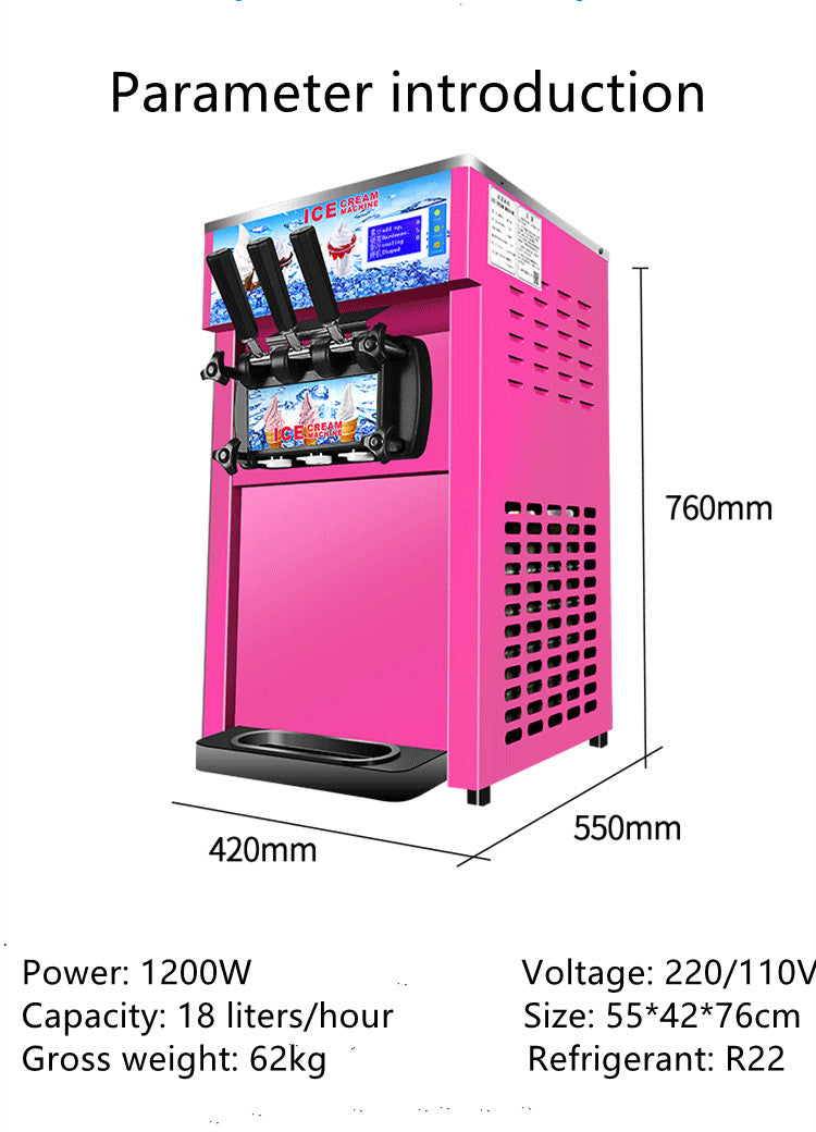 * 3 Flavors(2+mixer) soft ice cream machine, 220V50HZ, 1200W(can be customerized). Auto washing,auto counting function.