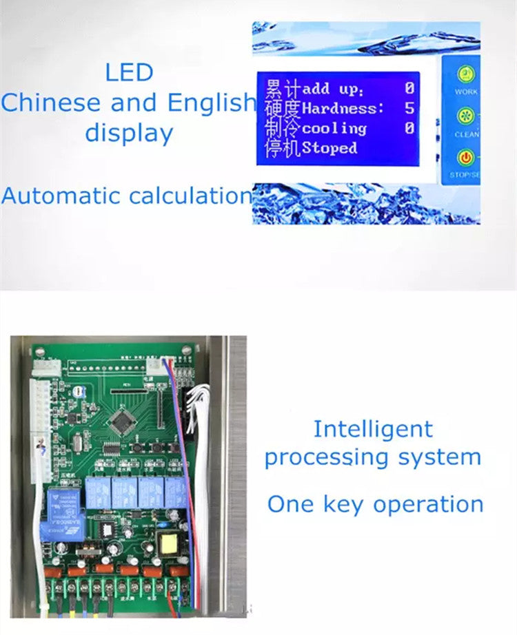 INTELLIGENT CONTROL-Convenient to Operate with LCD Display The production is simple, practical and inexpensive. You can freely modulate according to different tastes. With LCD display design, you can control the quantity, hardness and temperature at any time. There is no refrigeration function in the tank, so please take out the ice cream mixture in time when not in use.
